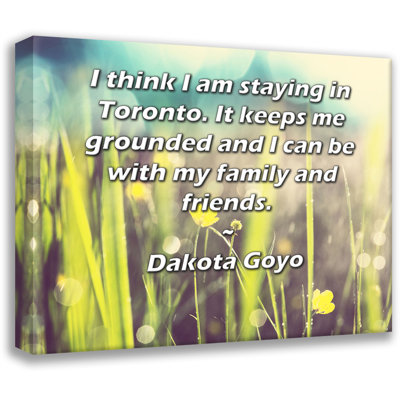 ArtsyQuotes Gallery Wrapped Canvas By Dakota Goyo: "I think I am staying in Toronto. It keeps me grounded and I can be with my family and friends."Museum quality fine art giclee reproduction printed on artist grade canvas. Wrapped and framed in a two inch black ornate wood frame. Astoria Grand Overall Size: 18" H x 14" WAstoria Grand