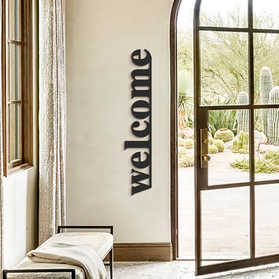 Metal Welcome Wall Art (Can be hung vertically in either direction)Welcome guests with the grace and simplicity of this modern minimalist Metal Welcome Wall Dcor. Crafted for versatility, this stylish piece can be hung in both ways and is ready to hang right out of the box. The wall art's robust steel construction ensures it is suitable for outdoor use, withstanding varied weather conARTEPERA
