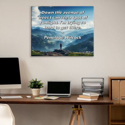 ArtsyQuotes Gallery Wrapped Canvas By Penelope Wilcock: "Down the avenue of trees I can see a spot of sunlight. Im trying so hard to get there."Museum quality fine art giclee reproduction printed on artist grade canvas. Wrapped and framed in a two inch black ornate wood frame. Astoria Grand Overall Size: 24" H x 17" WAstoria Grand