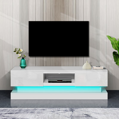 51.18Inch WHITE Morden TV Stand With LED Lights,High Glossy Front TV Cabinet,Can Be Assembled In Lounge Room, Living Room Or BedroomComes with clear installation instructions featuring diagrams and detailed explanations for intuitive assembly. Wrought StudioWrought Studio