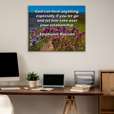 ArtsyQuotes Gallery Wrapped Canvas By Stephanie Boyette: "God can heal anything, especially if you let go and let him take over your relationship."Museum quality fine art giclee reproduction printed on artist grade canvas. Wrapped and framed in a two inch black ornate wood frame. Ophelia & Co. Overall Size: 24" H x 17" WOphelia & Co.