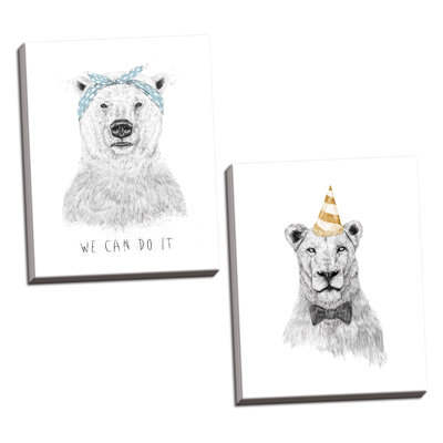 'Get the Party Started and We Can Do It' 2 Piece Drawing Print SetGreat addition to any home, ready to hang Made to order Wall decor Wrought Studio Format: Wrapped Canvas, Size: 14" H x 11" W x 0.75" DWrought Studio