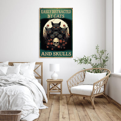 Easily Distracted By Cats And Skulls - 1 Piece Rec Easily Distracted By Cats And Skulls - 1 Piece Rectangle Graphic Art Print On Wrapped Canvas On CanAll pleasure is ours to have your attention on our finest canvas! This product is one of the indispensable items to highlight your room with impression and luxury. Also, it is such an excellent idea to make it a gift to your dearest ones! Trinx Size: 14" H x 11" W x 1.25" DTrinx