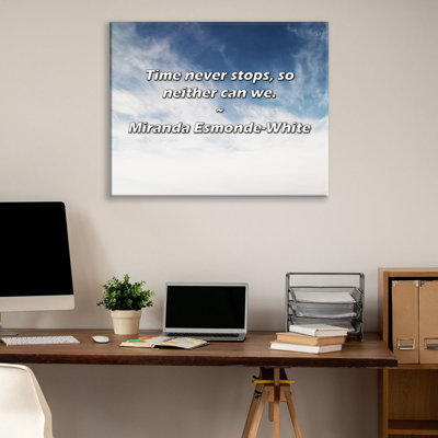 Artsy Quote "Time never stops, so neither can we." By Miranda Esmonde-White Gallery Wrapped CanvasMuseum quality fine art giclee reproduction printed on artist grade canvas. Wrapped and framed in a two inch black ornate wood frame. Astoria Grand Overall Size: 17" H x 24" WAstoria Grand