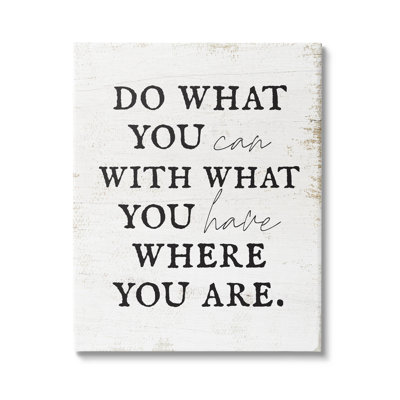 Do What You Can With What You Have Phrase Canvas Wall Art By Lil' RueProudly made in the USA, our stretched canvas, floter framed, framed gicle and wall plaques are created with only the highest standards. We print with high quality inks . The art comes ready to hang with no installation required. Stupell Industries Size: 20" H x 16" W x 1.5" DStupell Industries