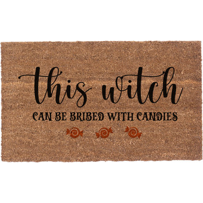Dimphy This Witch Can Be Bribed With Candies Non-Slip Outdoor DoormatThe Eco-friendly and natural alternative to your doormat, these mats provide a rich aesthetic to any building or home. Entrance mats are made by embedding natural coconut husk fiber into a vinyl backing. The Holiday Aisle Mat Size: 22" W x 36" LThe Holiday Aisle