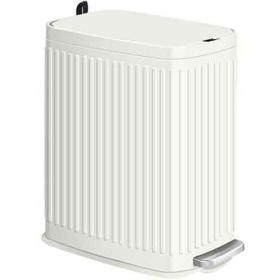 1.85 Gallons Step On Trash CanThis bathroom trash can offer a convenient and discreet way to store and contain waste, its slender profile easily fitting into tight space or corners, such as Bathroom corner, inside cabinets, under counters, next to sinks, etc.The trash can features a cushioning mechanism that slows down the closing of the lid, whichElaine Mercure