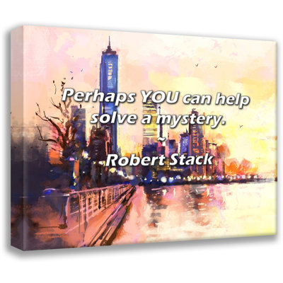 Artsy Quote "Perhaps YOU can help solve a mystery." By Robert Stack Gallery Wrapped CanvasMuseum quality fine art giclee reproduction printed on artist grade canvas. Wrapped and framed in a two inch black ornate wood frame. Astoria Grand Overall Size: 33" H x 48" WAstoria Grand