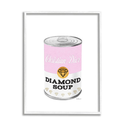Pink Condensed Soup Can Diamond Pop Fashion Glam Oversized White Framed Giclee Texturized Art By Amanda GreenwoodProudly made in the USA, our stretched canvas, framed gicle and wall plaques are created with only the highest standards. We print with high quality inks . The art comes ready to hang with no installation required. Everly Quinn Size: 14" H x 11" W x 1.5" DEverly Quinn