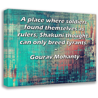 ArtsyQuotes Gallery Wrapped Canvas By Gourav Mohanty: "A place where soldiers found themselves as rulers, Shakuni thought, can only breed tyrants."Museum quality fine art giclee reproduction printed on artist grade canvas. Wrapped and framed in a two inch black ornate wood frame. Latitude Run Overall Size: 24" H x 17" WLatitude Run