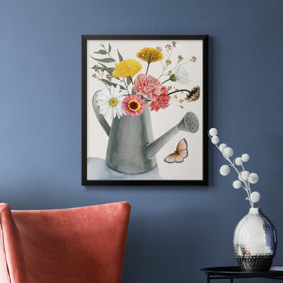 Watering Can Bouquet II Premium Framed Canvas - Ready to HangWatering Can Bouquet II Premium Framed Canvas - Ready to Hang A premium framedd canvas print created to last. Featuring a beveled a solid wood stretcher bar, each piece comes ready to hand Each piece is made to order. Built to Last Each piece comes ready to hang Solid wood stretcher Fade and Water resistant Made domestAugust Grove