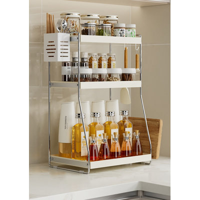 Kitchen Seasoning Shelf Countertop Multifunctional Household Seasoning Salt Seasoning Can Storage Box Multi-Layer SheMade of selected thickened steel, with scratch resistance, corrosion resistance, and anti-rust properties, ensuring long-lasting quality with moisture resistance. Prep & Savour Size: 21.85" H x 12.59" W x 8.26" DPrep & Savour