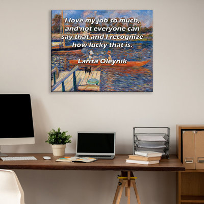 ArtsyQuotes Gallery Wrapped Canvas By Larisa Oleynik: "I love my job so much, and not everyone can say that and I recognize how lucky that is."Museum quality fine art giclee reproduction printed on artist grade canvas. Wrapped and framed in a two inch black ornate wood frame. Astoria Grand Overall Size: 24" H x 17" WAstoria Grand