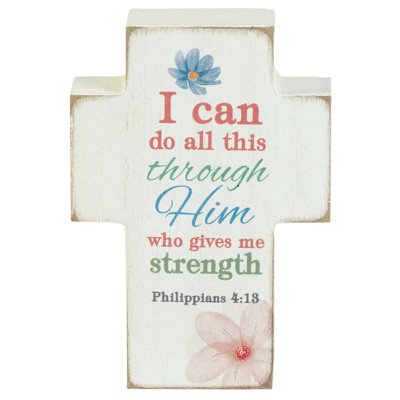 Dyfed I Can Do AllThis Little Cross-Shaped Plaque Is A Great Gift. It Includes: I Can Do All This Through Him Who Gives Me Strength And Reference Philippians 4:13 With A Floral Accent. Sides And Back Have White Wash Distressed Finish. TrinxTrinx
