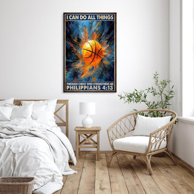 Basketball I Can Do All Things On Canvas Graphic ArtAll pleasure is ours to have your attention on our finest canvas! This product is one of the indispensable items to highlight your room with impression and luxury. Also, it is such an excellent idea to make it a gift to your dearest ones! Trinx Size: 36" H x 24" W x 1.25" DTrinx