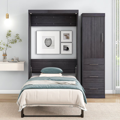 Murphy Bed With Wardrobe And Drawers, Storage Bed, Can Be Folded Into A Cabinet[Clever Design] The space in the cabinet can perfectly accommodate your bed, and the legs of the bed are designed to fit your mattress and sheets just right, so you don't need to worry about bedding falling out of the cabinet alone the next time you use it. The folded bed merges with the cabinet, making it impossible tHokku Designs