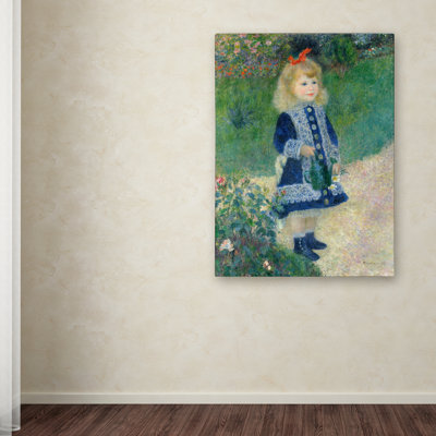 A Girl With a Watering Can by Pierre-Auguste Renoir - Print on CanvasThis ready to hang, gallery-wrapped art piece features a little girl with a watering can in a garden. Pierre-auguste Renoir (1841-1919) was a french artist who was a leading painter in the development of the impressionist style. As a celebrator of beauty, and especially feminine sensuality, it has been said that RenoirVault W Artwork