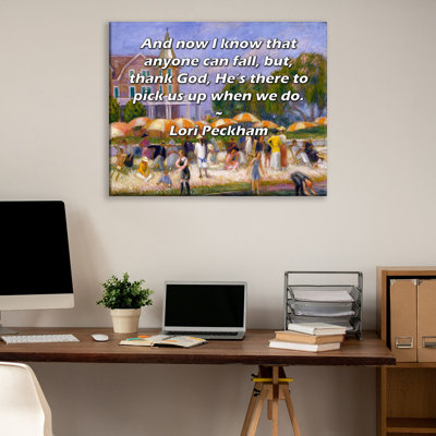 ArtsyQuotes Gallery Wrapped Canvas By Lori Peckham: "And now I know that anyone can fall, but, thank God, Hes there to pick us up when we do."Museum quality fine art giclee reproduction printed on artist grade canvas. Wrapped and framed in a two inch black ornate wood frame. Astoria Grand Overall Size: 24" H x 17" WAstoria Grand