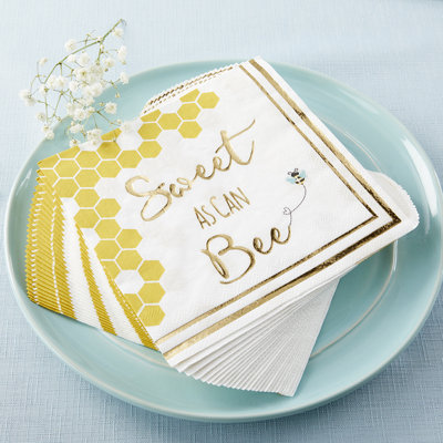 Kate Aspen Sweet As Can Bee Decorative Paper Baby Shower Napkins (Set Of 30), Thick Decorative Dinner Napkins, Luncheon Serveware, 2 PlyOur Sweet as Can Bee 2 Ply Paper Napkins (Set of 30) are essential for your bumble bee baby shower. Brightly colored, but never bleeding, our two ply high quality paper napkins are the top tier of paper napkins. Fit for the most formal affair and cute enough for a low-key baby shower in the backyard, our paper napkinsKate Aspen