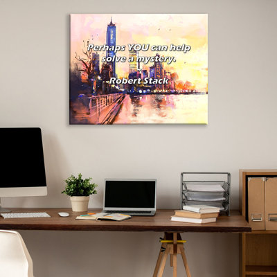 Artsy Quote "Perhaps YOU can help solve a mystery." By Robert Stack Gallery Wrapped CanvasMuseum quality fine art giclee reproduction printed on artist grade canvas. Wrapped and framed in a two inch black ornate wood frame. Astoria Grand Overall Size: 17" H x 24" WAstoria Grand
