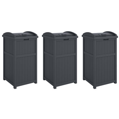 Suncast Trash Hideaway Outdoor Gallon Garbage Waste Can BinHide your trash in this 3-pack of 30-Gallon Hideaway Trash Waste Bins for Outdoor from Suncast.These stylish trash cans have a securely latching lid that keeps trash hidden inside, and protected from the elements and invading, hungry outsiders. These trash cans stand 31.5 inches tall and use standard 30 to 33-gallon trSuncast