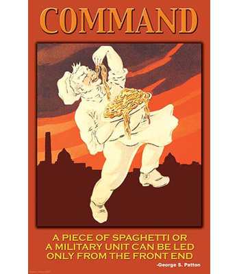 'Command; Spaghetti and an Army Can Only Be Led From the Front End' by Paris Pierce Vintage AdvertisementChef puts Spaghetti in his mouth. Buyenlarge Size: 30" H x 20" W x 1.5" DBuyenlarge