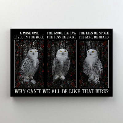 The Owl In Da Garden - Why Can't We All Be Like That Birds - 1 Piece Rectangle Graphic Art Print On Wrapped CanvasBring the intrigue of nocturnal wildlife into your home with this captivating owl print. This machine -produced artwork complements modern decor. Made in the USA. Trinx Size: 24" H x 36" W x 2" DTrinx