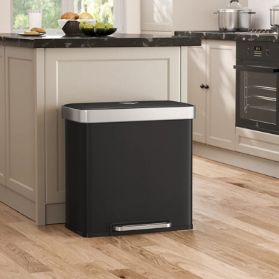 Kitchen 13.2 Gallon Step on Trash CanCheck out highlights of this trash can: You can easily step on the pedal to open the lid.The lid can stay open for a longer period of time.It closes slowly and gently without noise.It comes with a removable inner plastic bucket.The inner bucket has a cutout hole for the plastic bag. Wipe clean with a soft, damp cloth aSongmics