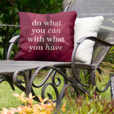 Do What You Can Indoor/Outdoor Throw PillowDouble sided print- Spun Poly material with down alternative / blown and closed. This versatile masterpiece brings a dynamic feel to your outdoor decor theme perfectly accenting your deck, patio, or pool seating. Made with a water and UV resistant material, this durable pillow can serve both stylish and functional purpArtVerse