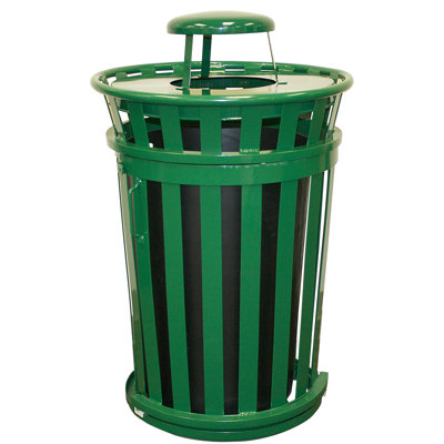 Oakley Receptacle 36 Gallon Trash CanThe Oakley Collection features several high-quality, attractive models of slatted metal waste receptacles that are perfect for outdoor use. Metal receptacle made of durable flat-bar steel with rain cap. Features a sliding door to allow access to inside liner to easy servicing. Witt Color: GreenWitt