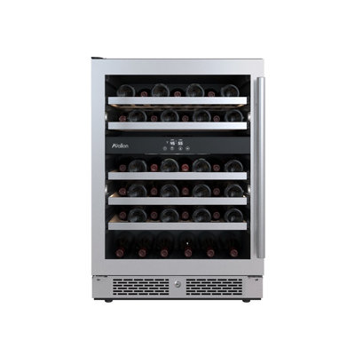 45 Bottle and 15 Can Dual Zone Built-In Wine RefrigeratorLow-E, argon filled gas, double paned glass, provides exceptional insulation and protection to ensure your collection is preserved Selectable blue, white or new, amber color interior LED lighting options Standard width for typical undercounter installations Easily monitor and change the temperature with the sleek touchAvallon