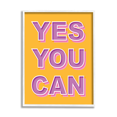 Yes You Can Purple And YellowOur stretched canvas, framed gicle and wall plaques are created with only the highest standards. We print with high quality inks. The art comes ready to hang with no installation required. Stupell Industries Overall Size: 30" H x 24" W x 1.5" D, Frame Color: WhiteStupell Industries