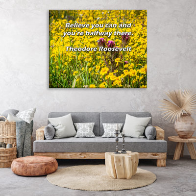 Artsy Quote "Believe you can and youre halfway there." By Theodore Roosevelt Gallery Wrapped CanvasMuseum quality fine art giclee reproduction printed on artist grade canvas. Wrapped and framed in a two inch black ornate wood frame. Astoria Grand Overall Size: 33" H x 48" WAstoria Grand