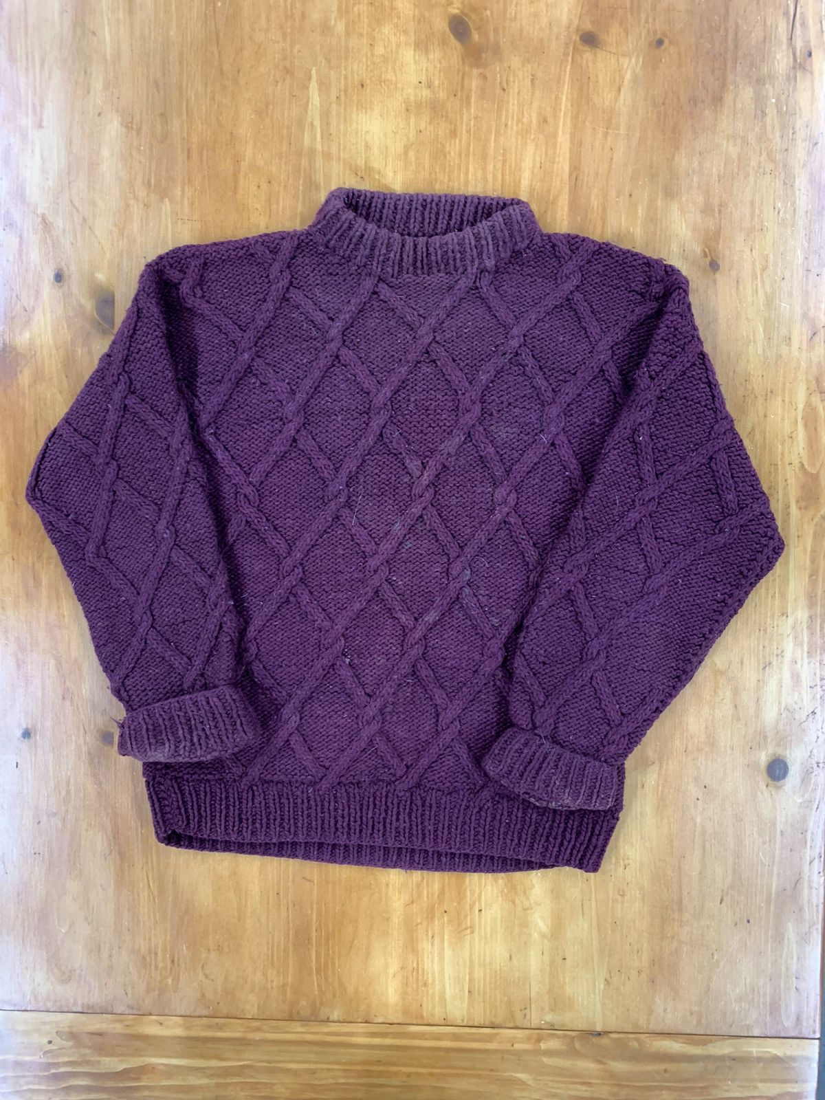 Cardigan x Coloured Cable Knit Sweater Vintage Diamond Chain Cableknit Sweater (Distressed) in Maroon (Size XL)Used Condition Check Dimensions Before Buying 23102 | Cardigan x Coloured Cable Knit Sweater Vintage Diamond Chain Cableknit Sweater (Distressed) in Maroon (Size XL)Cardigan x Coloured Cable Knit Sweater