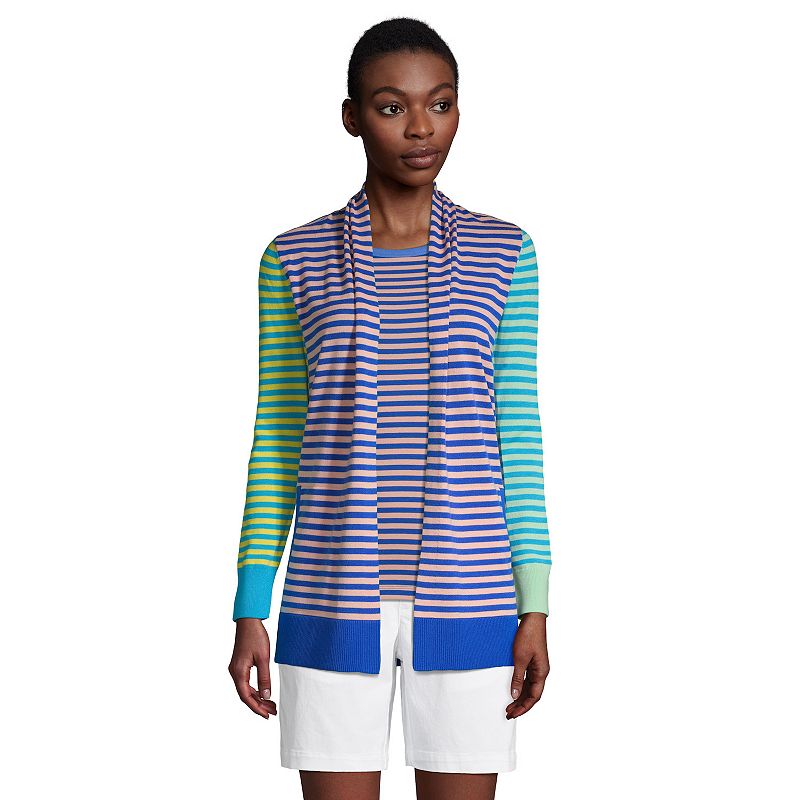 Petite Lands' End Open-Front Long Cardigan Sweater, Women's, Size: Large Petite, Crisp Pink StripeAdd some style to your look with this easy to wear, open-front petites' cardigan from Lands' End. The softly draped front is feminine and flattering. Throw it on over your tee in that chilly office and add it to your weekender bag for that perfect getaway piece.Click on this WOMEN'S GUIDE to find the perfect fit and moLands' End