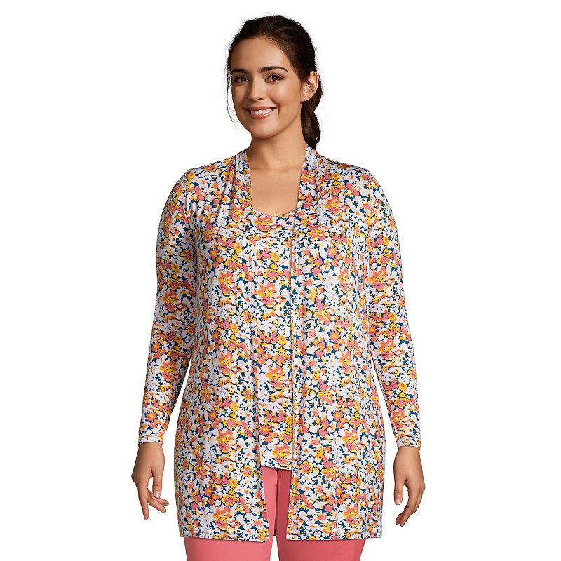 Plus Size Lands' End Lightweight Long Cardigan Sweater, Women's, Size: 2XL, Blue Team FloralLight and flowing, with a flattering easy open front and versatile length, this women's Lands' End long cardigan sweater means endless layering and style.Click on this WOMEN'S GUIDE to find the perfect fit and more! Draped, open front Long sleeves 2 pockets Jersey construction UnlinedFABRIC & CARE Rayon, spandex MachinLands' End