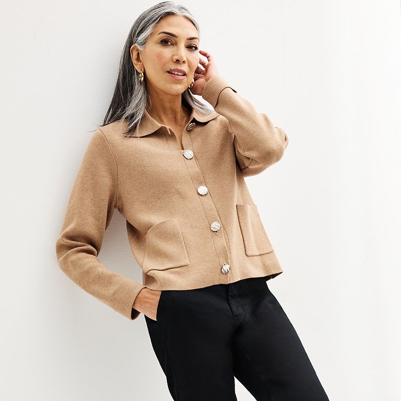 Women's Jaclyn Smith Novelty Button Cardigan Sweater, Size: Large, Camel GreyLarge buttons adorn this classically-styled Women's Jaclyn Smith Novelty Button Cardigan Sweater. Click on this WOMEN'S GUIDE to find the perfect fit and more! Large buttons adorn this classically-styled Women's Jaclyn Smith Novelty Button Cardigan Sweater. Click on this WOMEN'S GUIDE to find the perfect fit and more!Jaclyn Smith