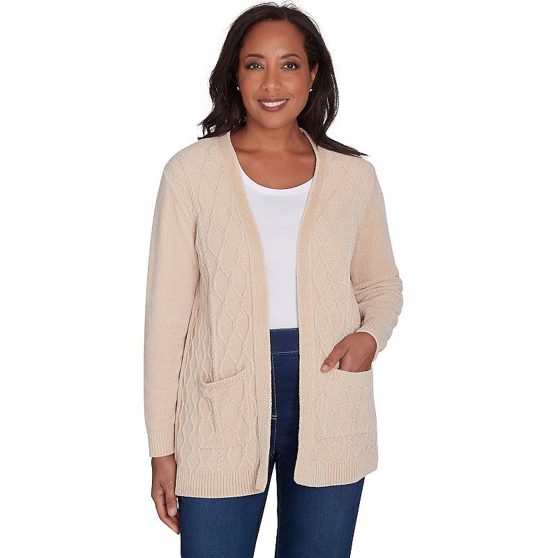 Petite Alfred Dunner Cable Knit Chenille Cardigan Sweater, Women's, Size: XL Petite, LatteStep into a gorgeous new look with this versatile Petite Alfred Dunner Cable Knit Chenille Cardigan Sweater.Click on this WOMEN'S GUIDE to find the perfect fit and more! Step into a gorgeous new look with this versatile Petite Alfred Dunner Cable Knit Chenille Cardigan Sweater.Click on this WOMEN'S GUIDE to find the peAlfred Dunner