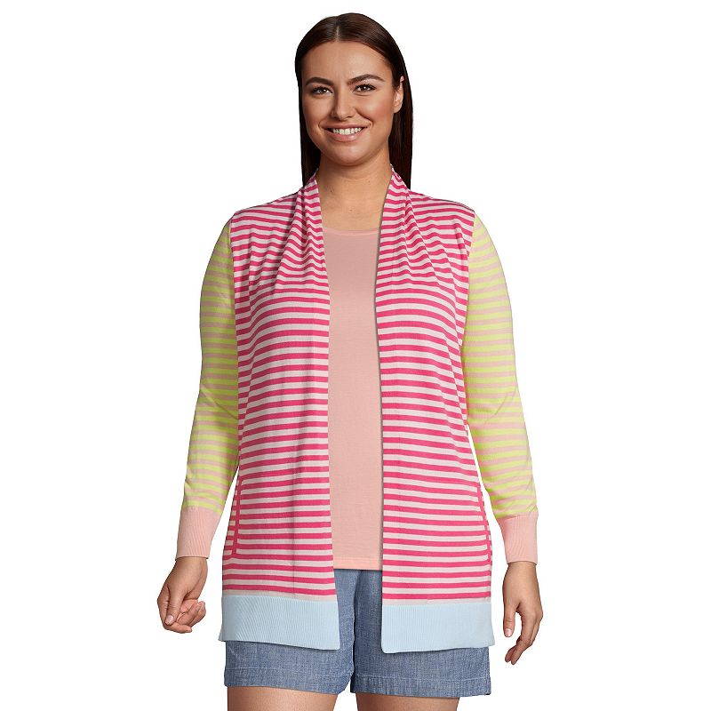 Plus Size Lands' End Draped Open-Front Long Cardigan Sweater, Women's, Size: 1XL, Pink StripeAdd some style to your look with this easy to wear, open-front women's cardigan from Lands' End.Click on this WOMEN'S GUIDE to find the perfect fit and more! Combed cotton feels extra smooth Draped open front Long sleeves Ribbed trim keep its shape 2 pocketsFIT & SIZING 30 3/4 in. approximate length Hits below hipFABRILands' End