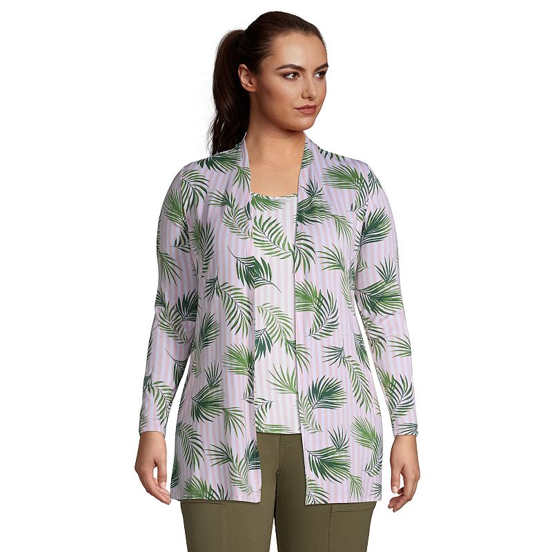 Plus Size Lands' End Lightweight Long Cardigan Sweater, Women's, Size: 2XL, Pink White PalmLight and flowing, with a flattering easy open front and versatile length, this women's Lands' End long cardigan sweater means endless layering and style.Click on this WOMEN'S GUIDE to find the perfect fit and more! Draped, open front Long sleeves 2 pockets Jersey construction UnlinedFABRIC & CARE Rayon, spandex MachinLands' End