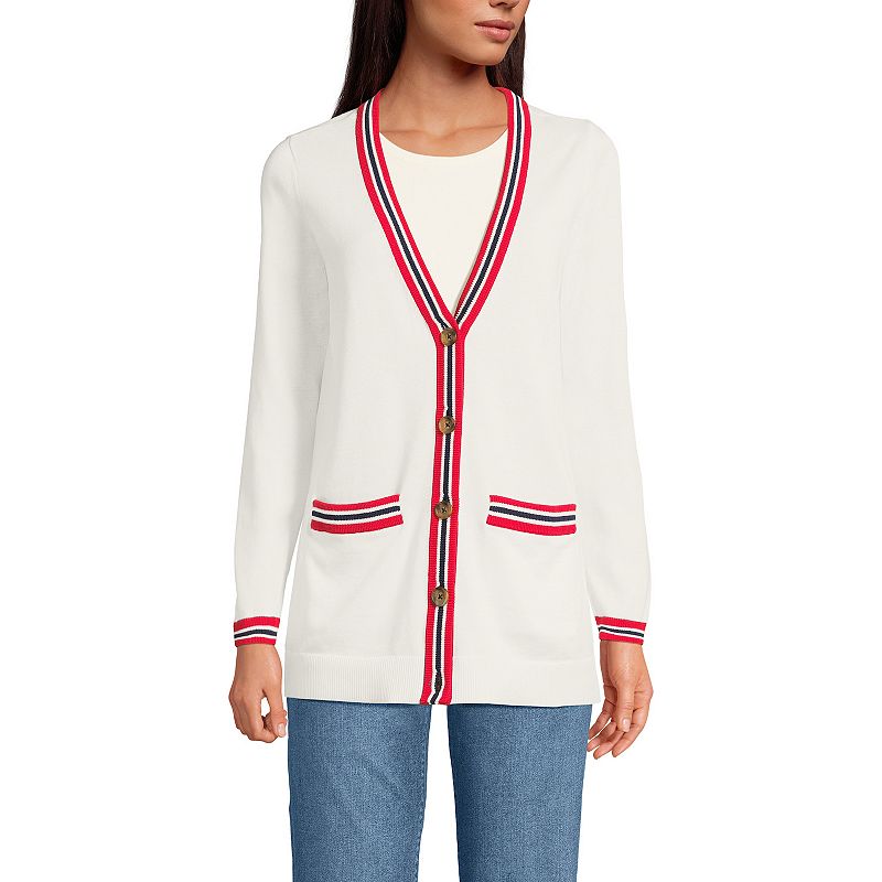 Women's Lands' End Cotton V-Neck Cardigan Sweater, Size: Medium, Red Blue Tip StripeCasual style never looked so good in this women's cardigan from Lands' End.Click on this WOMEN'S GUIDE to find the perfect fit and more! Casual style never looked so good in this women's cardigan from Lands' End.Click on this WOMEN'S GUIDE to find the perfect fit and more! FEATURES V-neck Long sleeves with ribbed cuffsLands' End