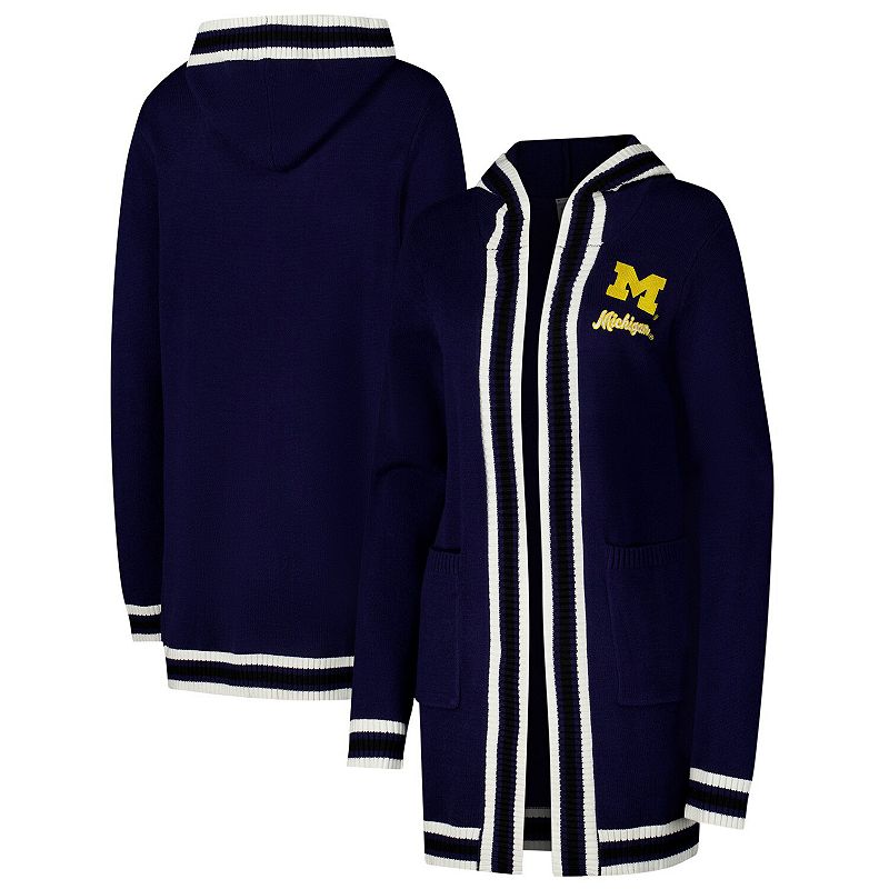 Women's Gameday Couture Navy Michigan Wolverines Stripe Detail Tri-Blend Hoodie Cardigan Sweater, Size: Medium, BlueCozy up and cheer on the Michigan Wolverines with this Stripe Detail Tri-Blend Hoodie Cardigan Sweater from Gameday Couture. Woven stripes add a touch of texture and dimension, while the open-front design makes layering a breeze. With two front patch pockets, this cardigan offers a convenient place to stash your essentGameday Couture