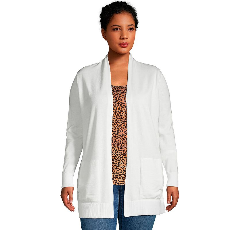 Plus Size Lands' End Draped Open-Front Long Cardigan Sweater, Women's, Size: 1XL, IvoryAdd some style to your look with this easy to wear, open-front women's cardigan from Lands' End.Click on this WOMEN'S GUIDE to find the perfect fit and more! Combed cotton feels extra smooth Draped open front Long sleeves Ribbed trim keep its shape 2 pocketsFIT & SIZING 30 3/4 in. approximate length Hits below hipFABRILands' End