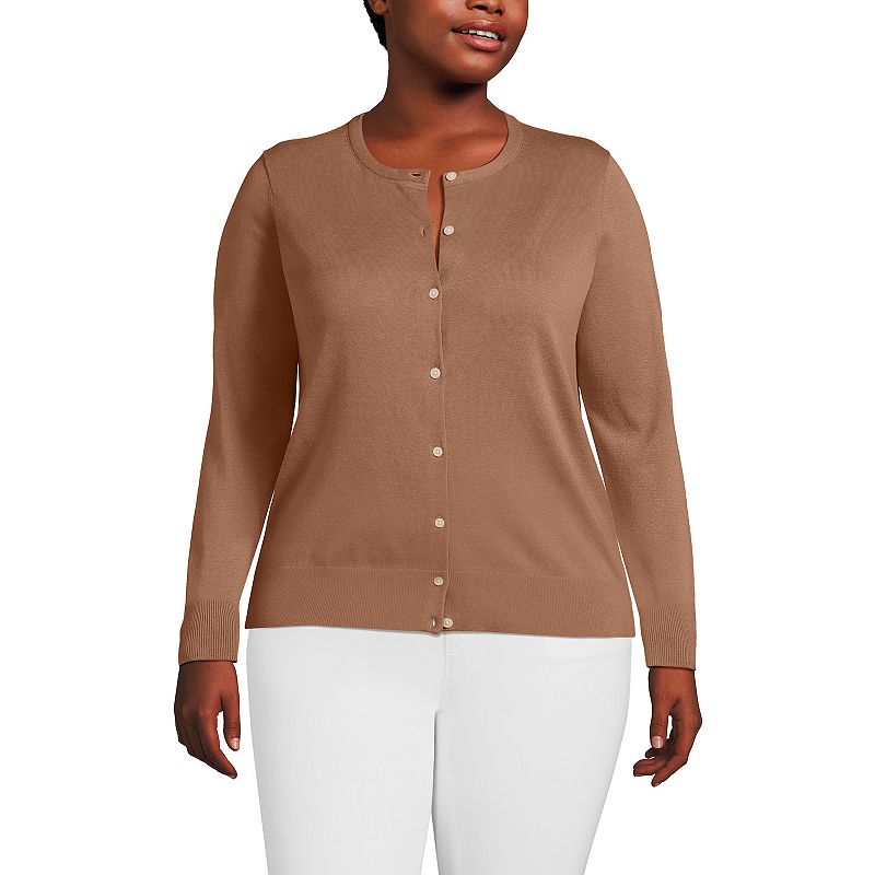 Plus Size Lands' End Fine Gauge Cotton Cardigan Sweater, Women's, Size: 3XL, Warm Tawny BrownEnhance your everyday look with this women's cardigan sweater from Lands' End. Beautiful colors that stay that way, wash after wash Ribbed cuffs and hemline to keep its shape Ultra-soft, color resilient cotton that's combed for smoothness to resist pilling Full fashioning ensures a ?made for you? fit Fine gauge designLands' End