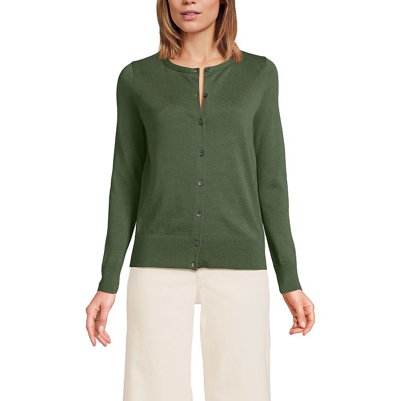 Petite Lands' End Fine Gauge Cotton Cardigan Sweater, Women's, Size: Large Petite, Estate GreenEveryone needs this cardigan. This women's petite sweater from Lands' End is the ideal weight for indoors without the worry of overheating. The fit offers cleaner, more modern lines that layer well over dress shirts, dresses, tees, and turtles. Ultra-soft, color resilient cotton that's combed for smoothness to resist pLands' End
