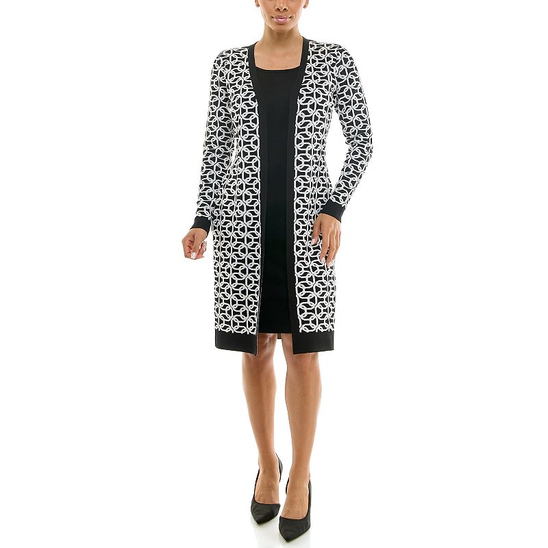 Women's Nina Leonard Cardigan & Sweater Dress Set, Size: Large, Black IvoryStay cozy and stylish in this women's cardigan & sweaterdress set from Nina Leonard.Finding the perfect fit and size for women's clothing requires basic measurements of your chest, waist, hips and inseam. Use this guide to learn more about sizing and everything Kohl's has to offer in women's fashion. 2-pc. set includesNina Leonard