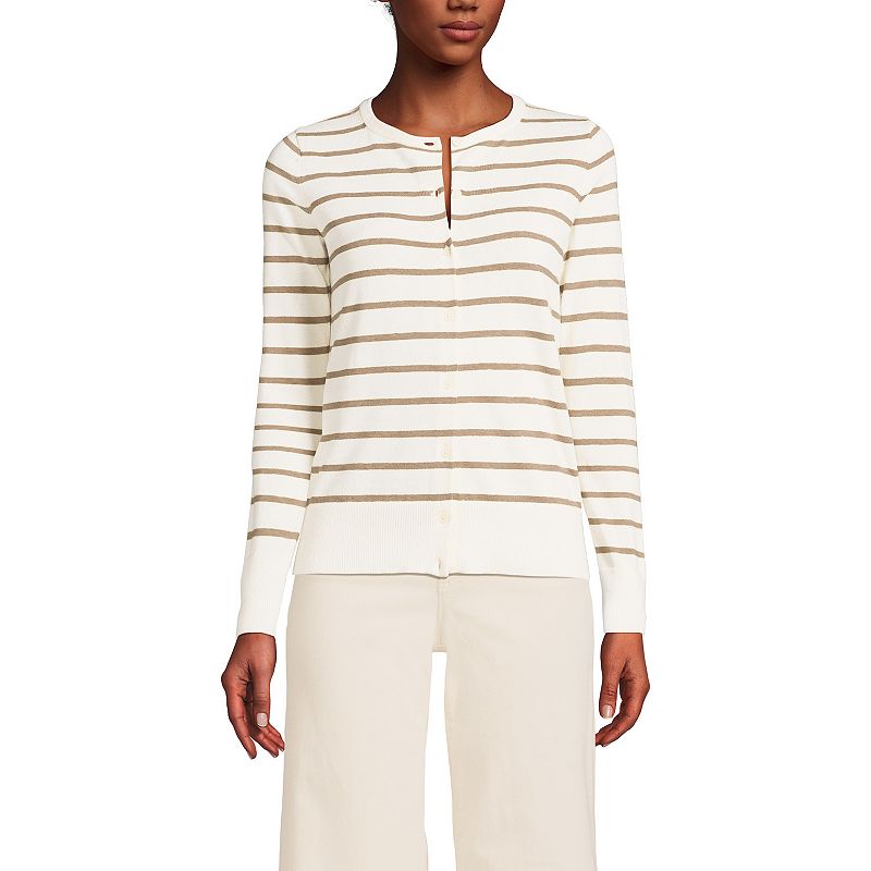 Women's Lands' End Fine-Gauge Cotton Cardigan Sweater, Size: Large, Ivory Pecan StripeYou'll love the classic, long-lasting style of this women's Lands' End fine-gauge cardigan sweater. Ultra-soft, color resilient, combed cotton Anti-pilling for long lasting wear Button front Long sleeves Ribbed trimFIT & SIZING Modern fitFABRIC & CARE Cotton Machine wash Imported Size: Large. Color: Ivory Pecan Stripe.Lands' End