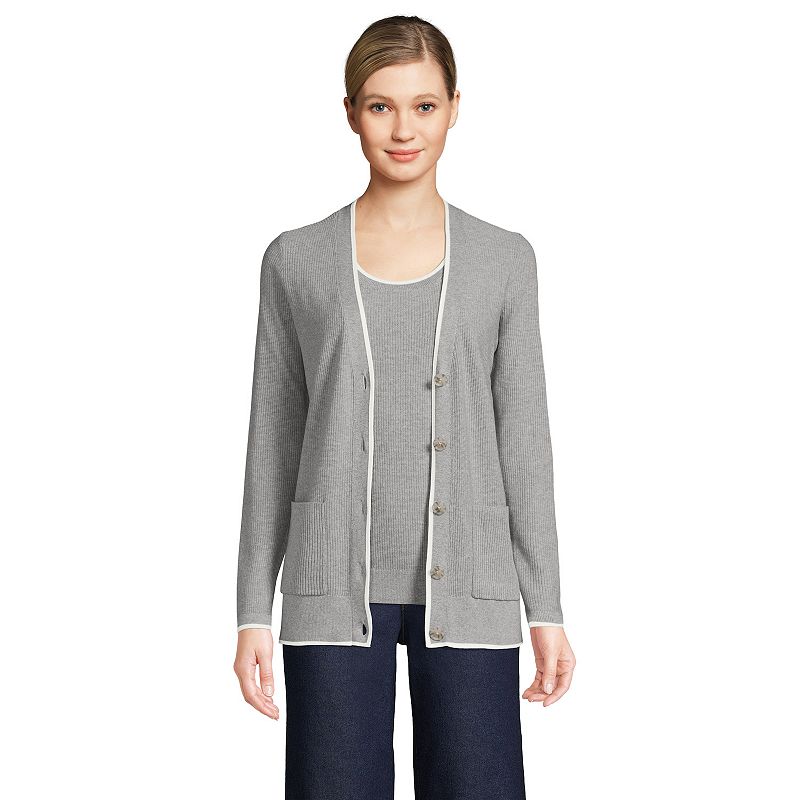 Women's Lands' End Fine Gauge Cotton Cardigan & Tank Top Sweater Set, Size: Small, Gray Grey IvoryCasual style and comfort is yours with this women's cardigan and sweater tank top set from Lands' End.Finding the perfect fit and size for women's clothing requires basic measurements of your chest, waist, hips and inseam. Use this guide to learn more about sizing and everything Kohl's has to offer in women's fashion.Lands' End