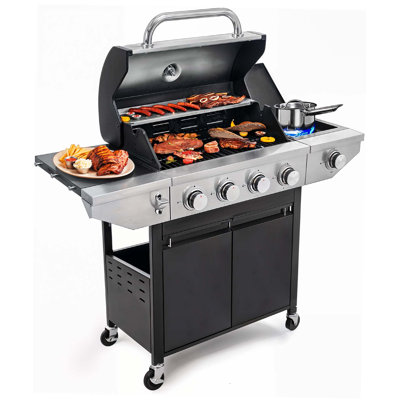 4+1 Burner Propane Gas Grill with Side Burner, Stainless Steel BBQ Grill 48,500 BTU, Black and SilverVersatile gas grill & Side Burners: Elevate your grilling experience with our dedicated gas grill, perfect for achieving those coveted grill marks and caramelization perfectly enhance the flavor of grilled dishes.. The convenient side burner is ideal for warming sauces or sauting sides, making your outdoor cooking evenYIORTWO