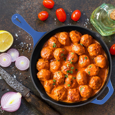 Pre-Seasoned Cast Iron Skillet with Lid, Grill-Safe Cookware, BlueCast Iron Pan The Cast Iron Grill Pan comes with pre-seasoned quality, making it ready for use straight out of the box and preventing any rusting issue. Our cast iron pan set comes with unique handles for easy maneuvering and pouring. doitbest Size: 12"doitbest